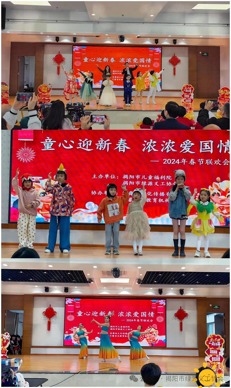 乐曲声声辞旧岁,欢歌笑语迎新年。为传承中华传统节日文化,营造欢乐喜庆的节日氛围,同时,丰富揭阳市儿童福利院全体干部职工和儿童文化生活,给孩子们一个真正展示自我风采的舞台,值此新春佳节来临之际,2024年2月2日揭阳市绿源义工协会携手揭阳市儿童福利院联合主办2024年春节辞旧迎新活动,由琴舞林文化传播有限公司,艺馨音乐教育机构一同协助办理。